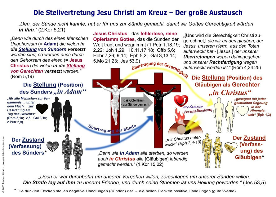 All das sind Aussagen der Heiligen Schrift über unsere Stellung in Christus; es ist ein Werk Gottes in Christus an uns, welches wir nur durch Glauben empfangen und annehmen können, indem wir uns dafür halten und mit den uns zugesagten unsichtbaren Tatsachen glaubend rechnen (vgl. Rö. 6,11).